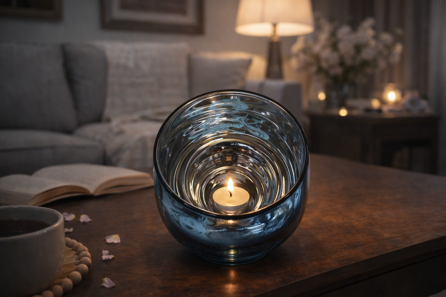 - Holds tealight, votive, and chime candles